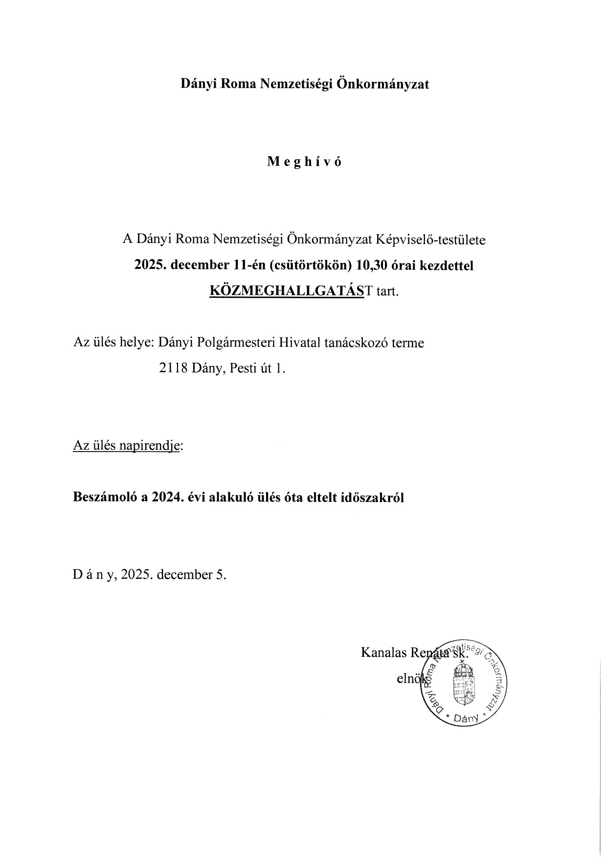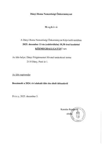 Meghívó a Dányi Roma Nemzetiségű Önkormányzat közmeghallgatására