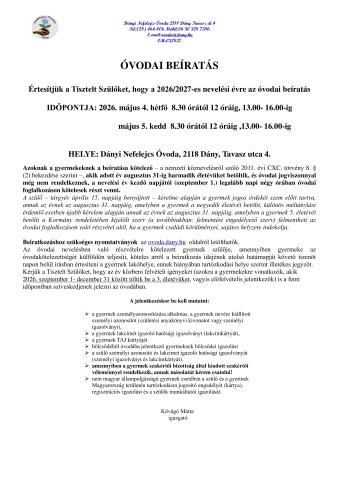Óvodai beíratás 2026