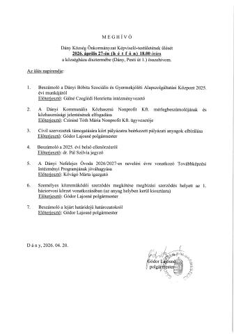 Felhívás Partnerségi egyeztetésre Dány Környezeti vizsgálat eldöntése I_433_27_2024