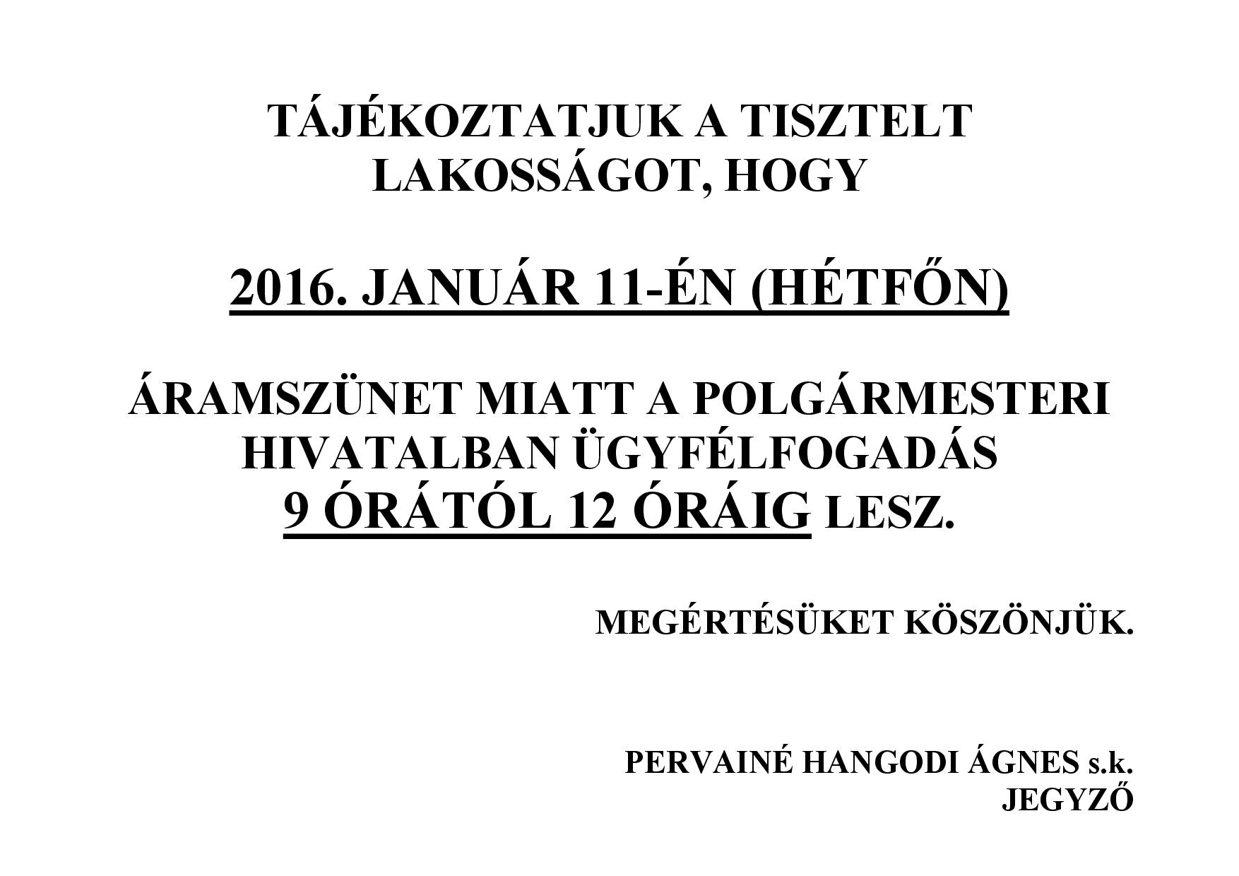 Az áramszünet a Polgármesteri Hivatal működését is érinti.